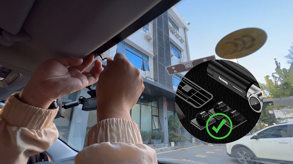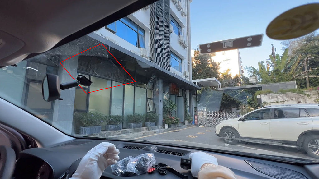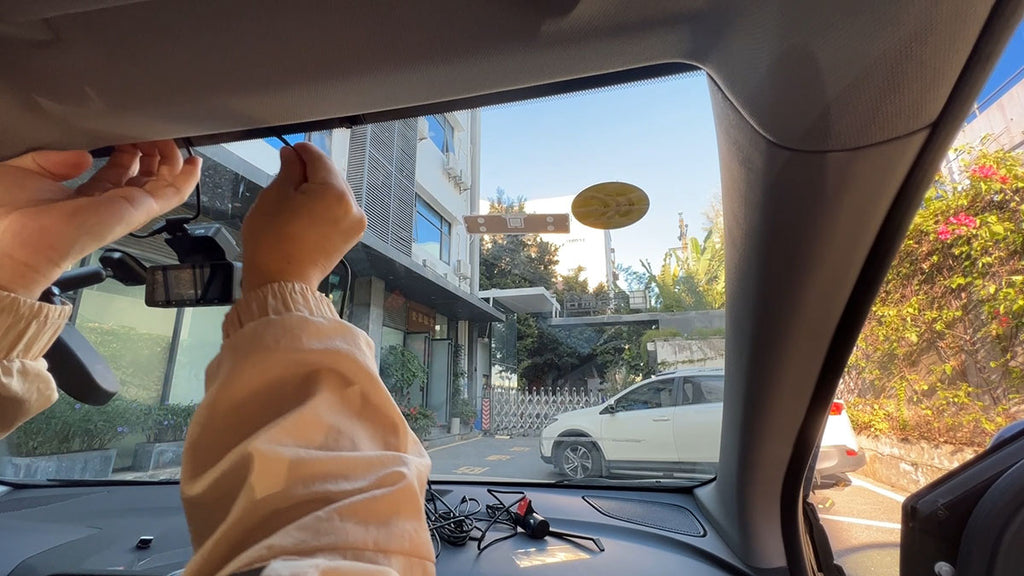 Now, focus on the front windshield, choosing a suitable spot to affix the Dash Cam's main unit. For a better view, it's recommended to install the Dash Cam in the area just below the rearview mirror. Pro tip: If it's a screen-less Dash Cam, you can hide it behind the rearview mirror.