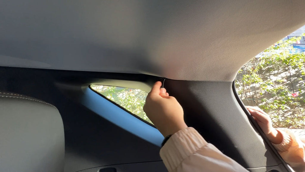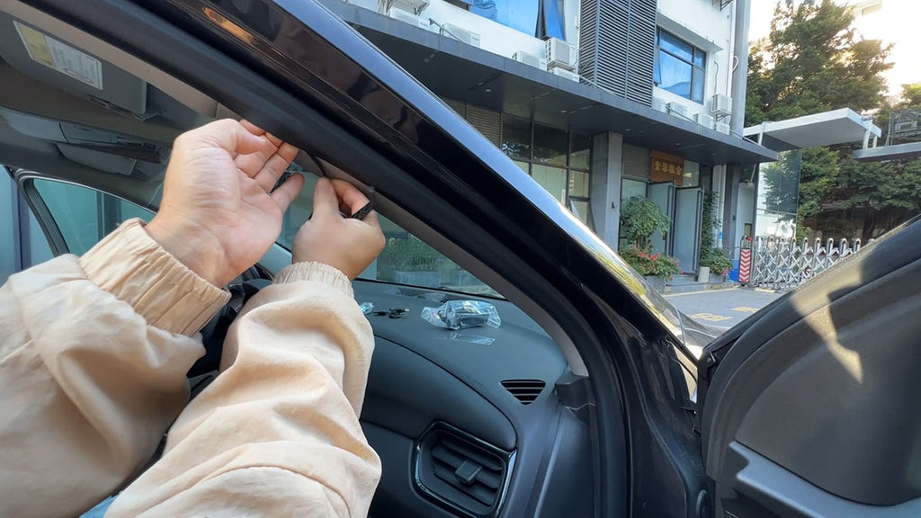 Use the rubber sealing strip along the rear door to hide the cable, routing it to the middle position of the rear door.