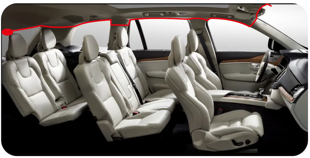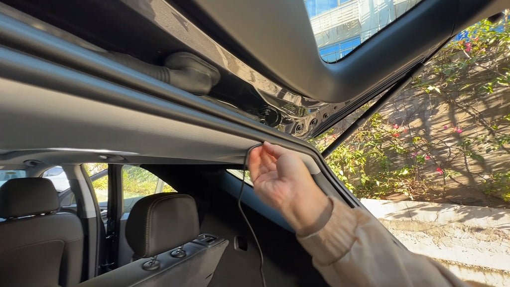 Hide the cable in the gap between the front windshield and the roof cover. Follow the wiring route as shown in the diagram.