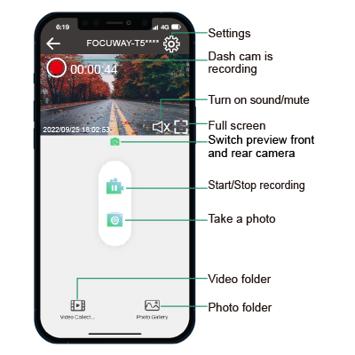 - T5,T6 Dash Cam: After startup, wait for the dash cam's voice prompt "Recording Start," and the WiFi will automatically activate.