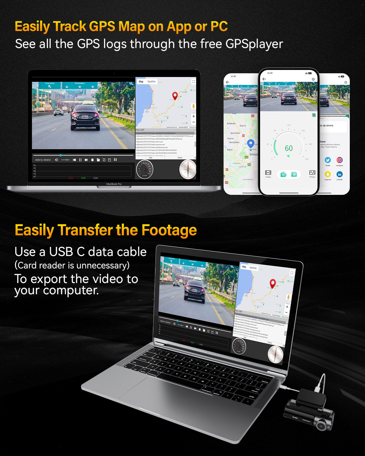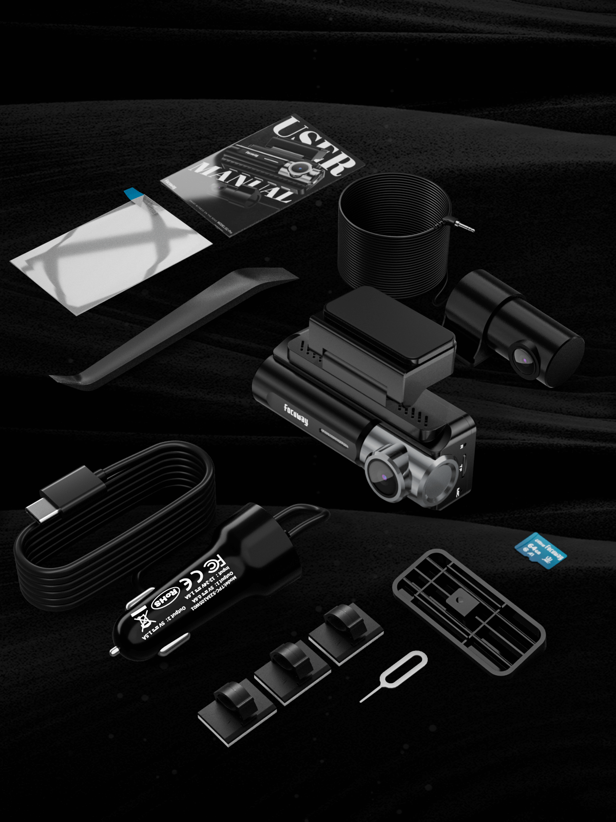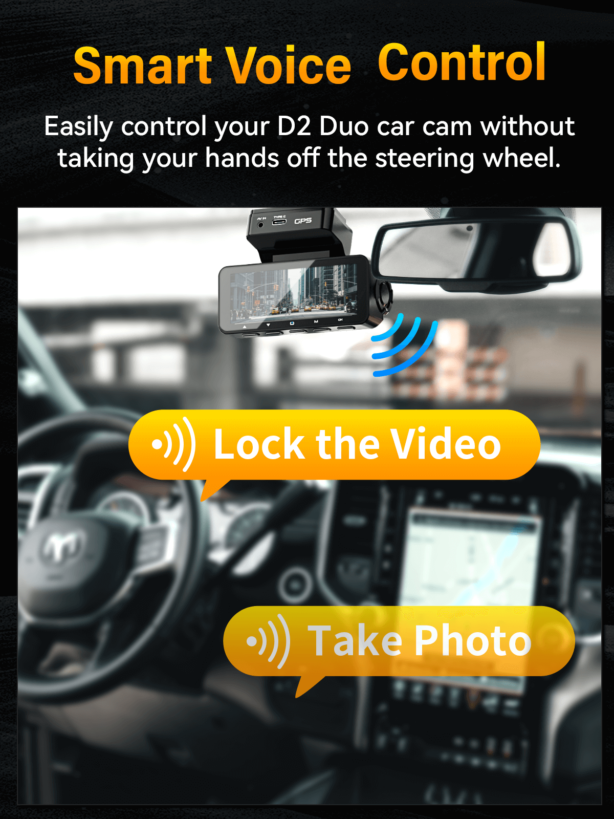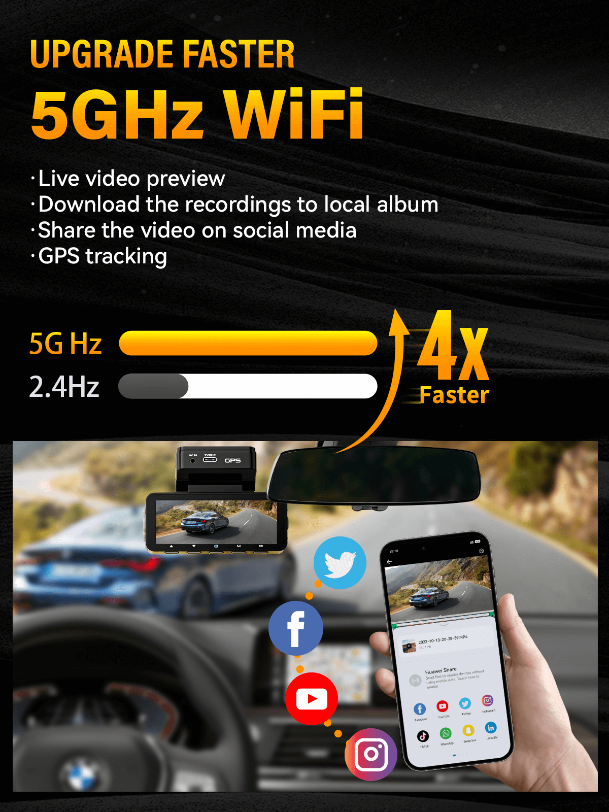 Dash Cam Front Rear 4K Built-in GPS 5GHz WiFi, 3.39’’ IPS Screen, Voice Control, Dual Dash Camera for Cars Free 64GB SD Card, Super Night Vision, 24H Parking Monitor, Supercapacitor, Type C, WDR