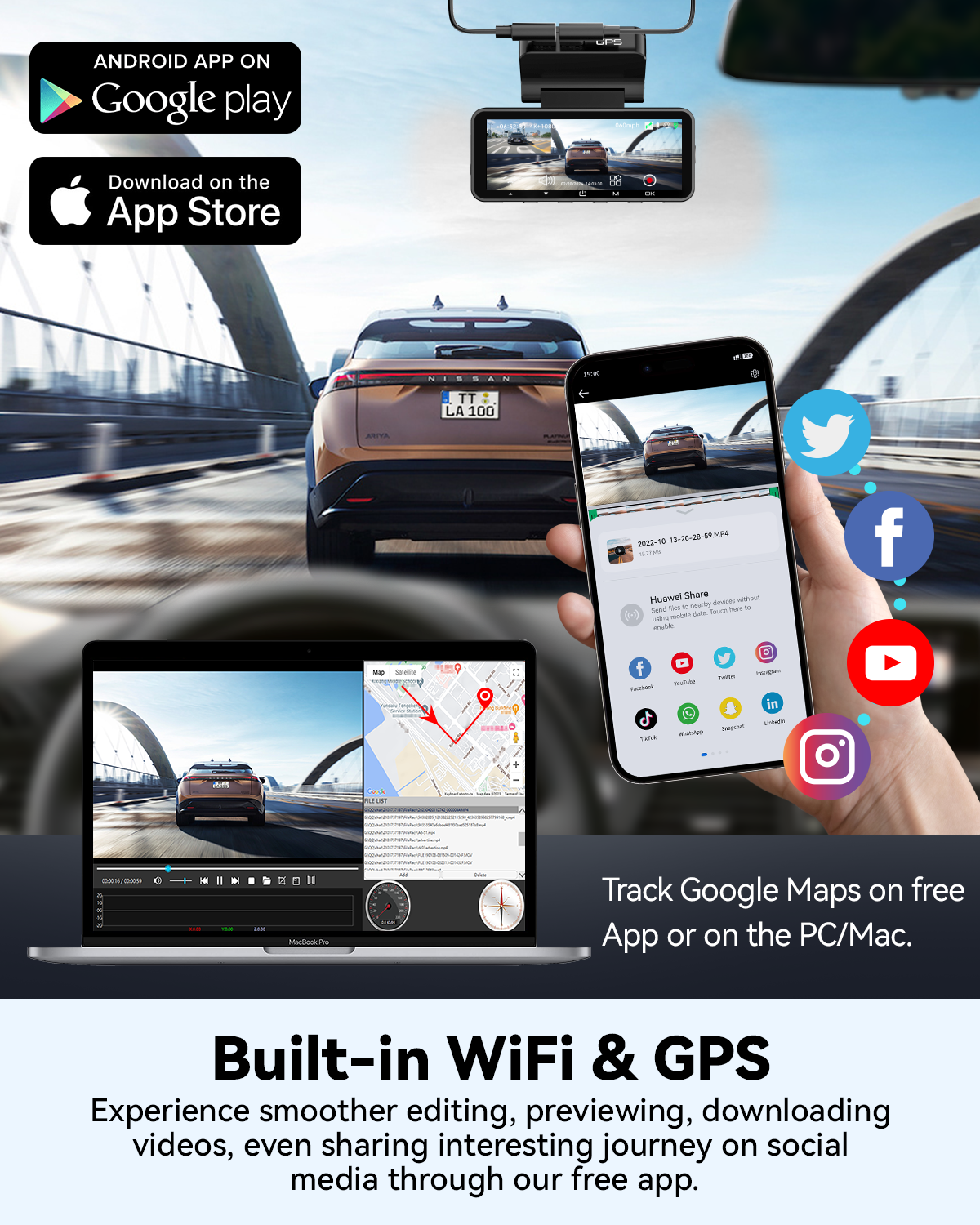 FOCUWAY Dash Cam Front and Rear, Touch Screen, 4K 30fps/2K 60fps+1080p 30fps Dash Camera for Car, Voice Control, Built-in GPS WiFi, HDR Night Vision, Free 64GB Card, 160° Wide Angle, 24H Parking Mode