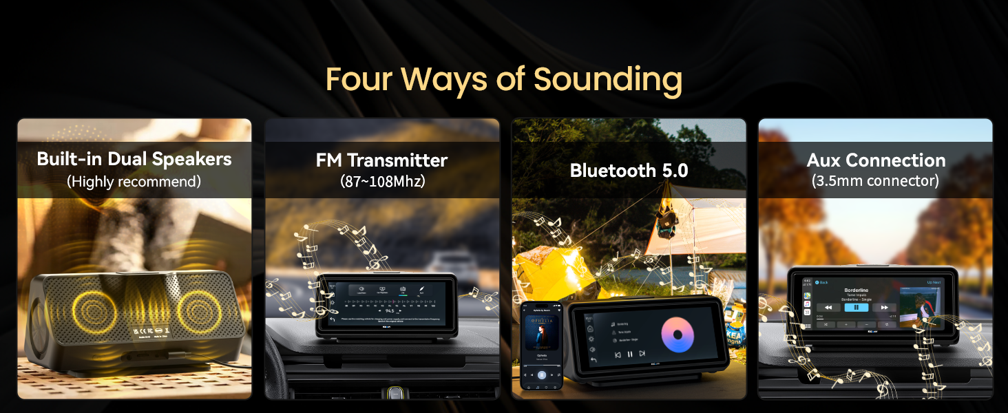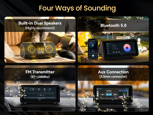 - 【Unique Appearance & Compatible】Focuway ODVOX smart car stereo stands out with its unique and stylish design, easy to install, and compatible with all vehicles from 5V to 28V. This truly portable design is not only suitable for car audio systems but also versatile for outdoor gatherings and home entertainment, bringing exceptional audio enjoyment to every occasion.