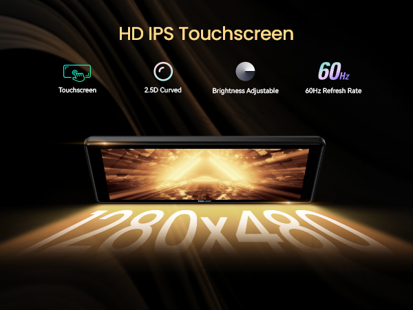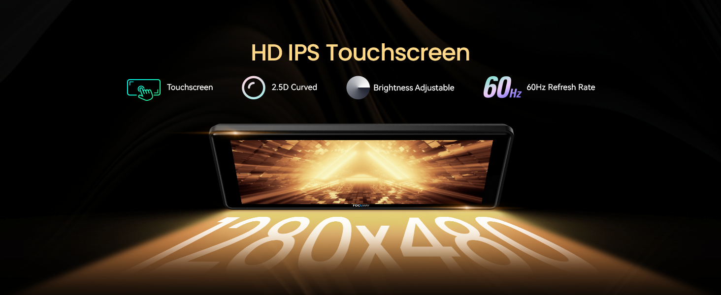 - 【60hz HD IPS Touchreen】The Focuway ODVOX features a 6.86-inch high-definition IPS touch screen with a resolution of 480*1280 and a 60Hz refresh rate for smooth and stutter-free display. It also supports brightness adjustment to protect your eyesight and ensure that the screen content remains visible even under strong light conditions.