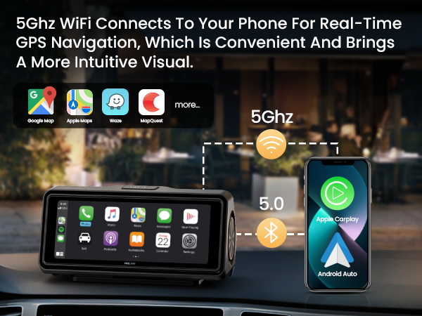 - 【Advanced Voice Control】Whether you're an Apple or Android user, you can effortlessly access voice navigation, hands-free calls, message sending, and music playback through Siri or Google Assistant, enhancing your driving focus and safety.
